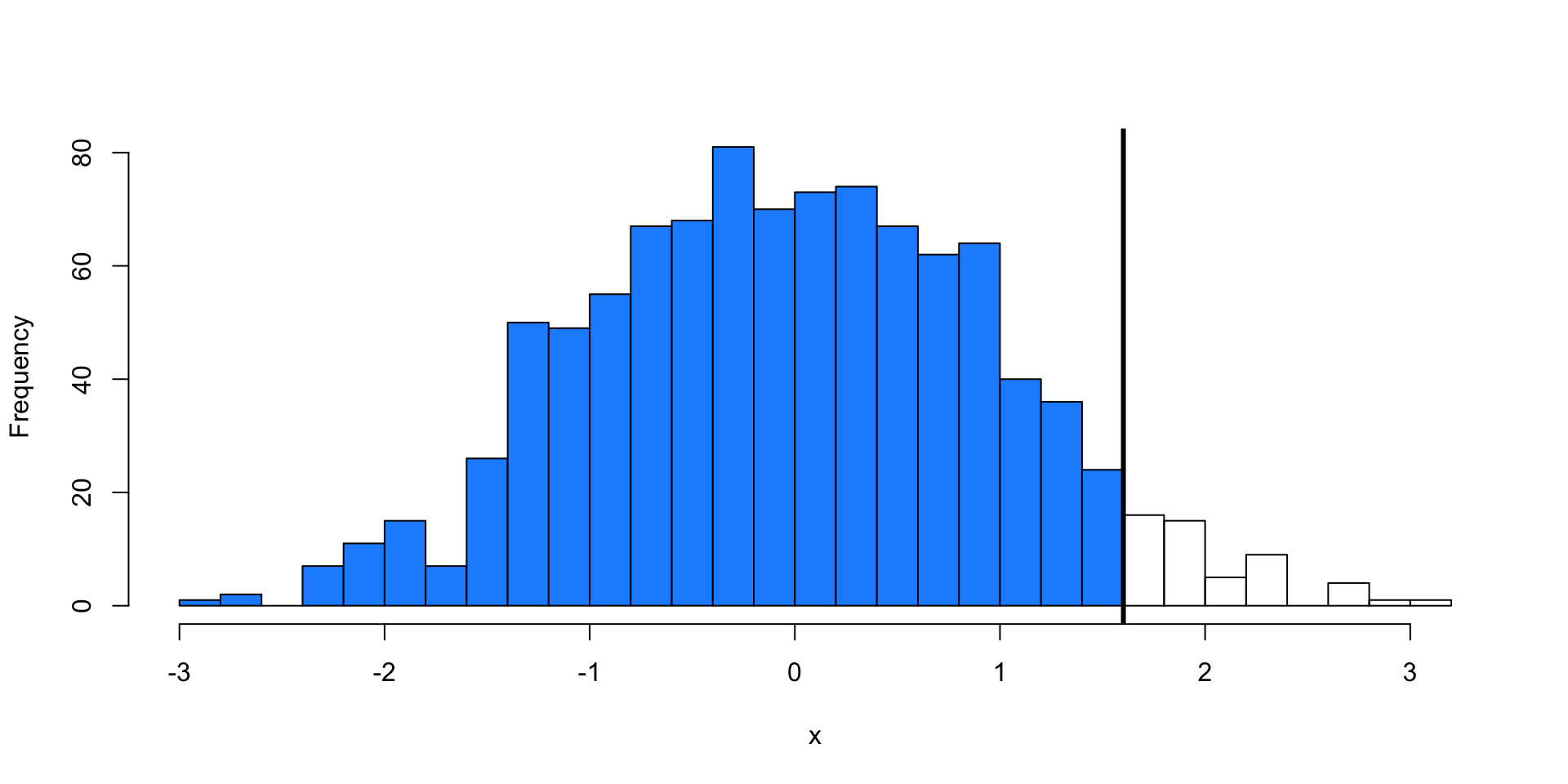 For \(0 \le \alpha \le 1\), the upper \(\alpha\)–quantile of \(x_1, x_2, \ldots, x_n\) is the value for which at least \(\alpha\) fraction of the points have a value greater or equal to it.